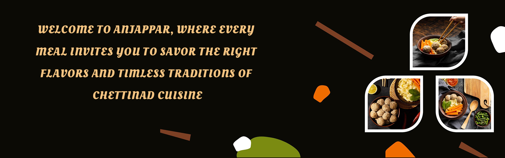 For over 60 years, Anjappar has perfected the Art of Chettinad cuisine. Each dish - whether it's our aromatic biryani,golden dosas,or rich Curries - carries the essence of tradition and Crafts manship passed down through Generations